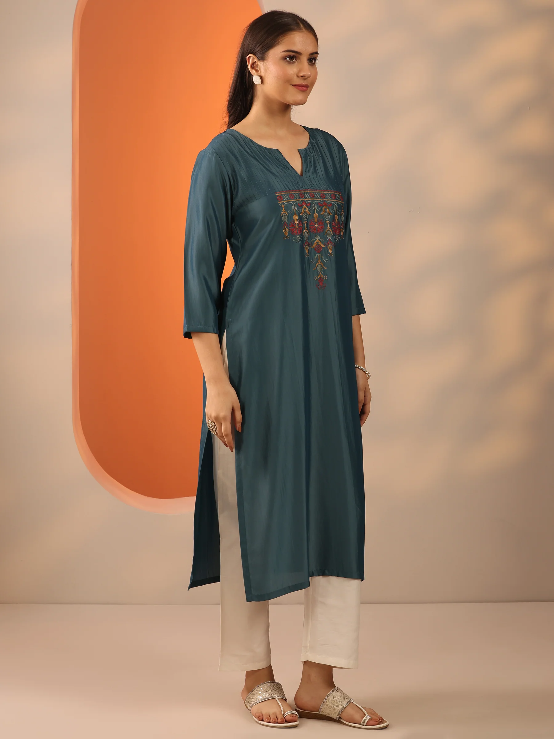 • Sleeve Length: Three-quarter sleeves