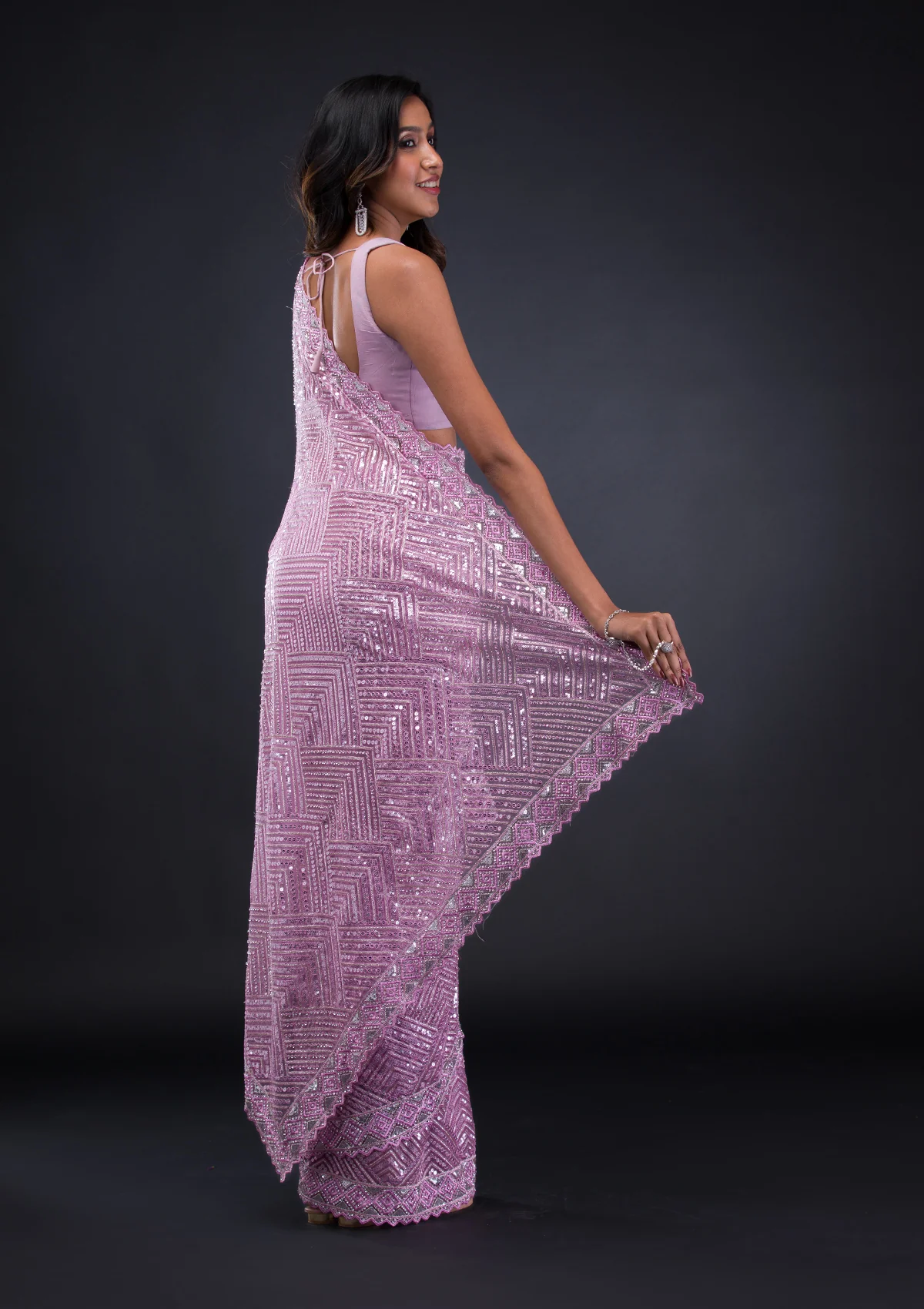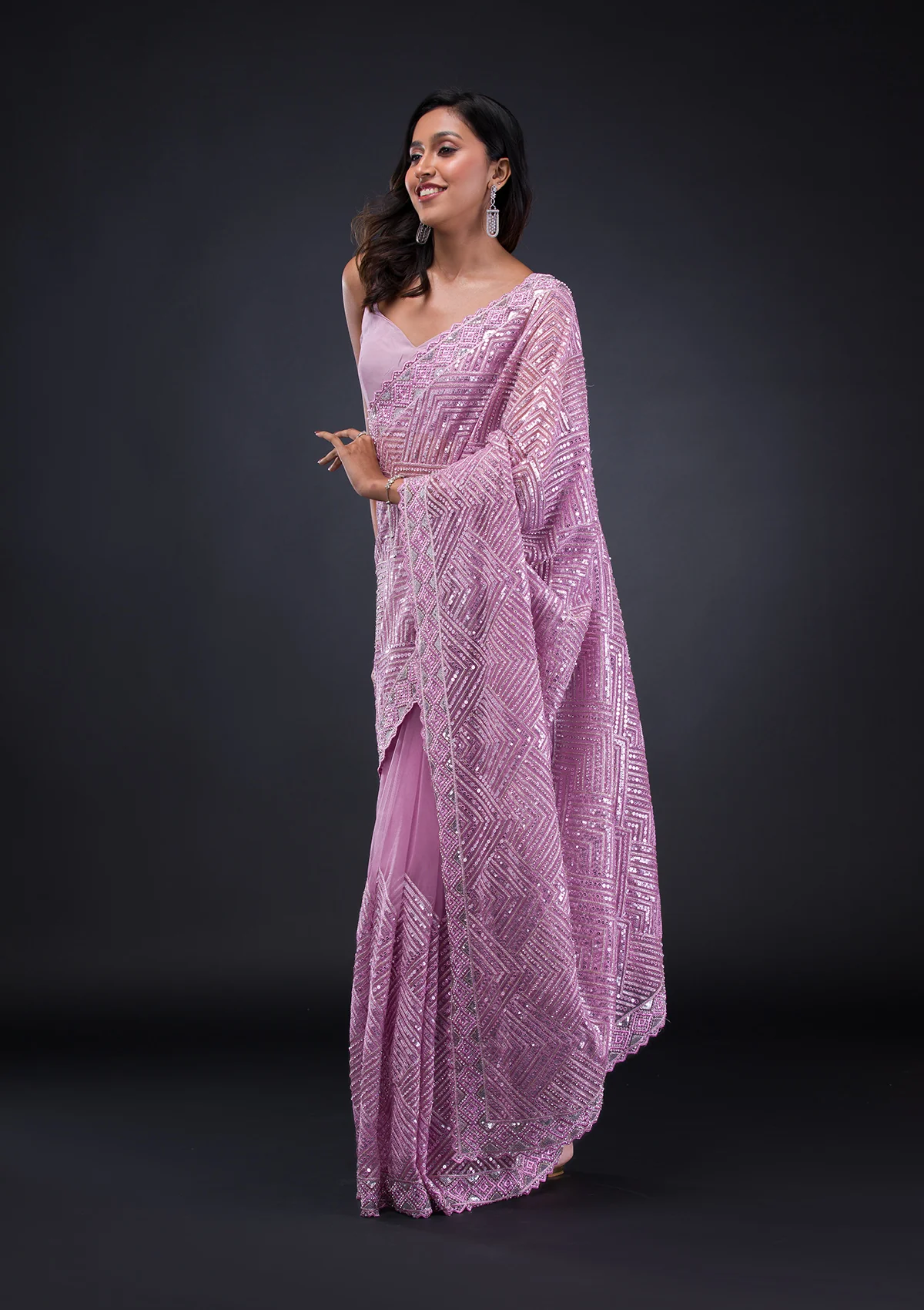 Violet Silver Stonework Satin Saree